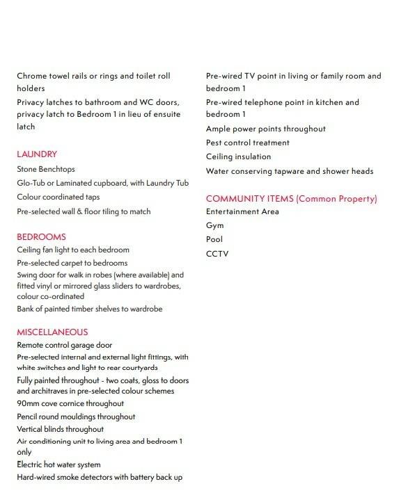 The near new townhouses have luxury kitchens equipped with stainless electric appliances including dishwasher and stone benchtops, tiled living areas that open onto a covered pergola and maintained courtyards. All bedrooms have built-in robes and ceiling fans, reverse cycle air conditioners installed to both the living and master bedrooms. Enter with ease through the remote control garages, security screens are installed to the lower level and master bedroom balconies with flyscreen's to all upper windows.